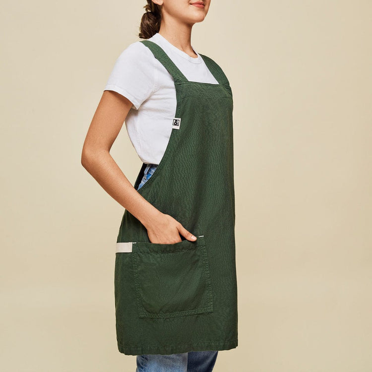 Reintroducing our smock collection, featuring super comfy crossback straps, a light and elegant linen/cotton blend, and tones inspired by nature. Our founder, Ellen, grew up cooking with her abuelita who would always insist on wearing a smock, so she set out to create the perfect one for H&B — a timeless design that has been around for centuries, updated in a modern way.