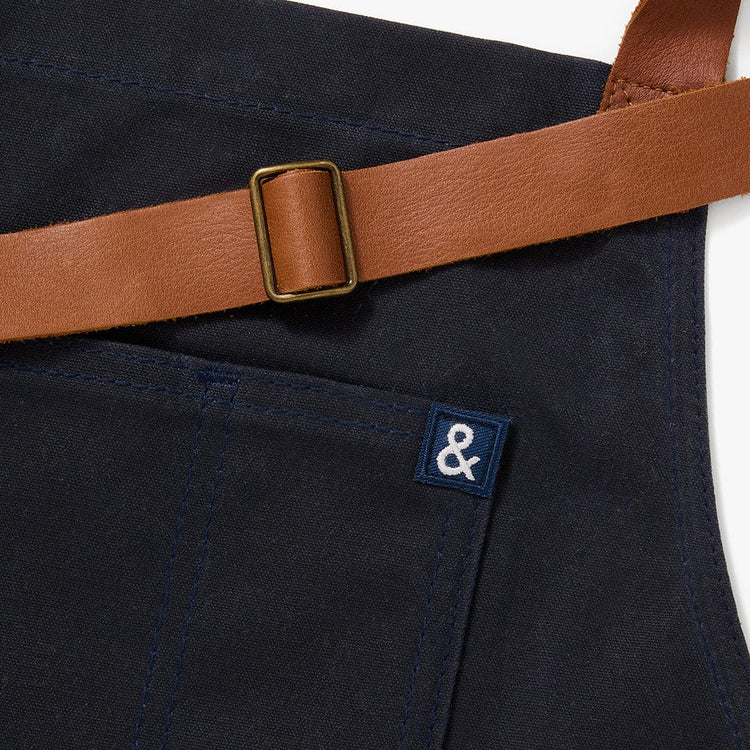 In a lush dark blue as vivid as its watery namesake, The Atlantic Waxman apron is named for one of the world’s greatest seafood sources. Tough enough to handle life on any deep sea fishing boat, the Waxman Apron’s heavy duty waxed canvas and leather straps are built to handle the hustle.